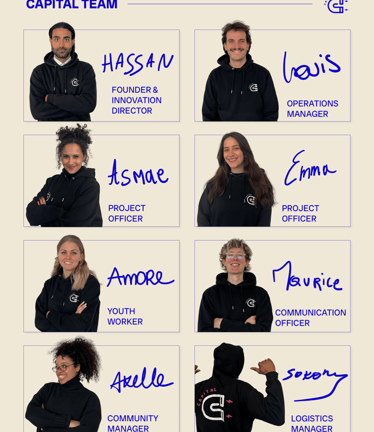 CAPITAL part des besoins, de l'expertise et des signaux des jeunes elleux-mêmes. Iels apportent des contributions essentielles pour lancer des projets durables. C'est pourquoi il est indispensable que chaque décision et projet réalisé par CAPITAL soit porté et renforcé par les jeunes. CAPITAL souhaite ainsi co-créer : pour les jeunes, par les jeunes. Les jeunes sont impliqué.es dès l'idéation avec le conseil des jeunes, jusqu'à la concrétisation avec nos rangers. Les rangers sont nos bénévoles qui gardent CAPITAL ouvert en dehors des heures de bureaux et qui sont impliqué.es dans le fonctionnement de plusieurs de nos programmes.