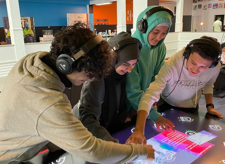 Une journée interactive de 6 heures (de 8h30 à 16h00), destinée aux élèves du troisième degré secondaire. La journée accueille une ou plusieurs classes, avec un groupe de 48 à 72 élèves, répartis en 4 groupes qui tournent entre quatre activités: